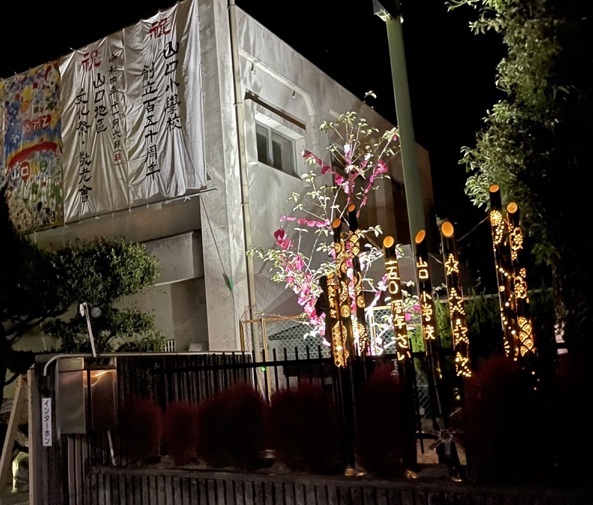 10月27日 愛育会さん手作りの竹灯籠が、 桜の下でキラキラと輝いています。 夜のお散歩をお楽しみください♪