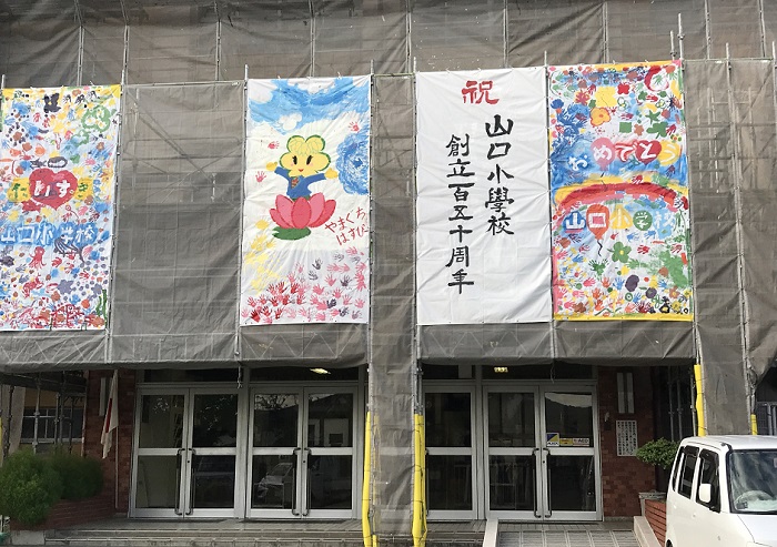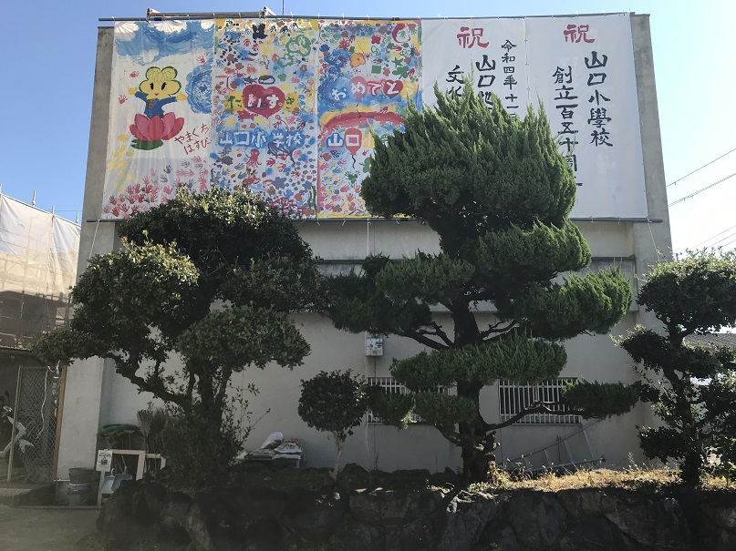 小学校が、すてきな色に生まれ変わり、 正面の足場も外れるそうです(^^♪ たれ幕たちは、前庭の鳥小屋付近にお引越し お近くをお通りの際は、覗いてみてください★
