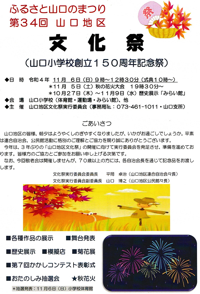 山口地区文化祭(150周年祭) と関連行事予定 |