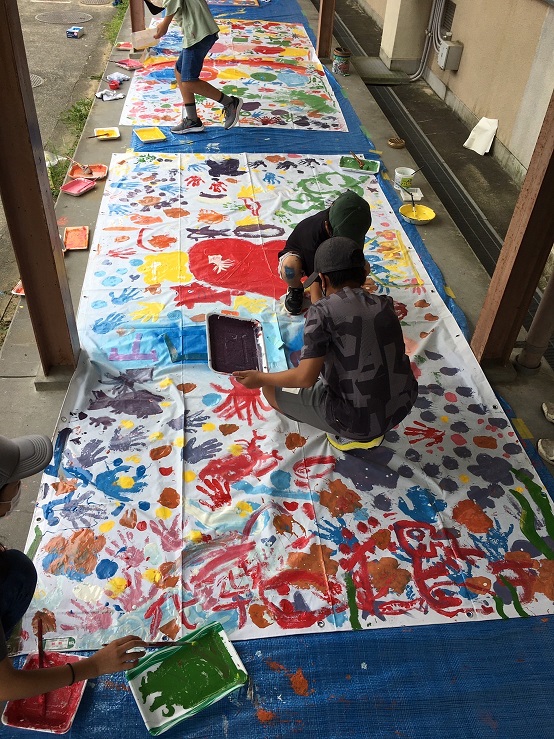 子どもたちに作ってもらった文化祭の看板と 花火の看板が設置されました!!