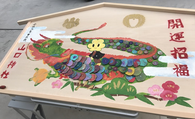 今年の干支、龍の大きな絵馬をつくって、山口神社に奉納しよう(^^♪