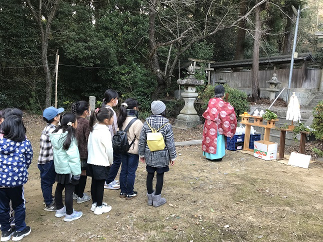 こどもたちが恭しく榊(さかき)を奉納