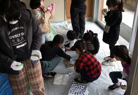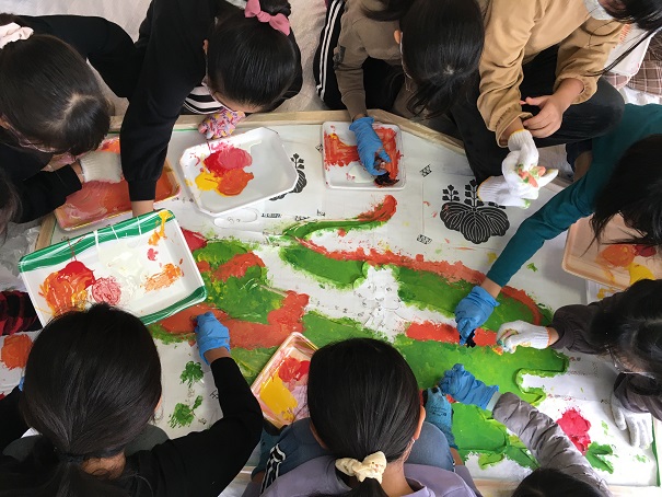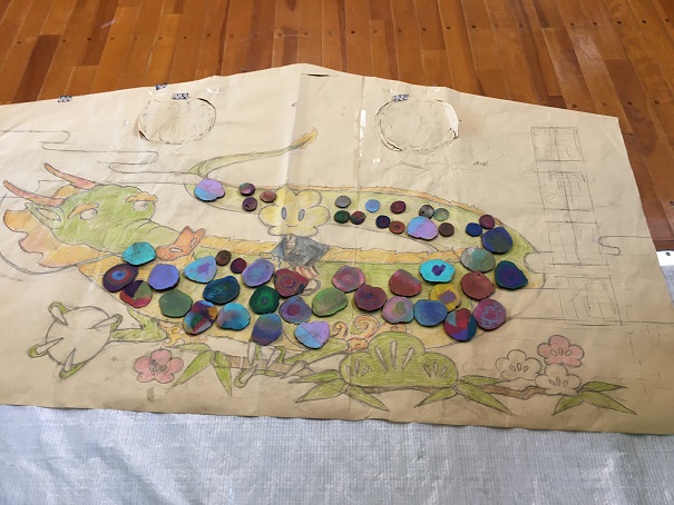 みんなで龍(りゅう)のウロコを作ります。